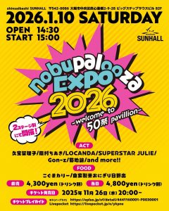 ✳️2026年1月10日(土)心斎橋SUNHALL nobupaloozaEXPO2026~welcome to 50祭pavillion~